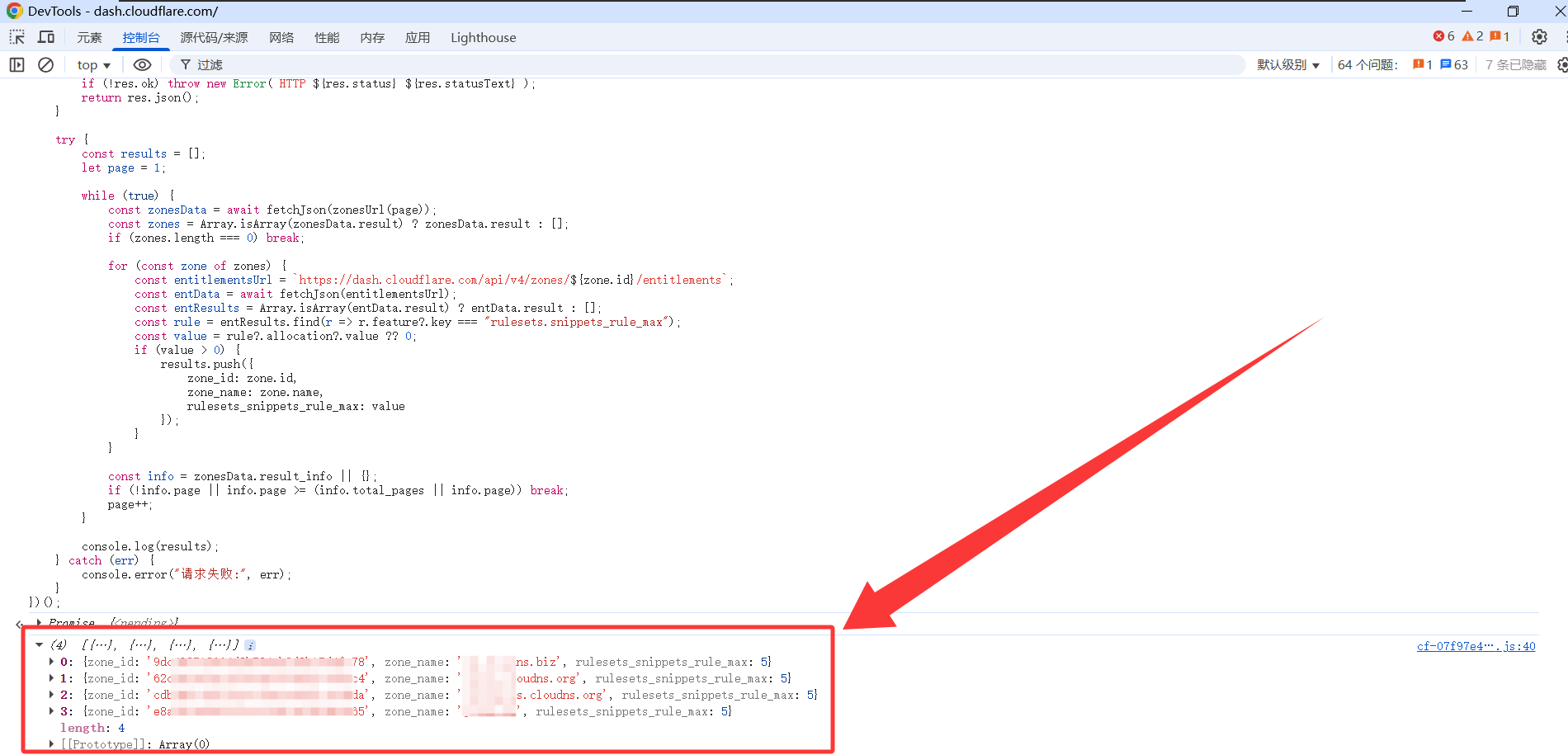 [],很遗憾!说明当前账号下没有任何域名没有Snippets功能。